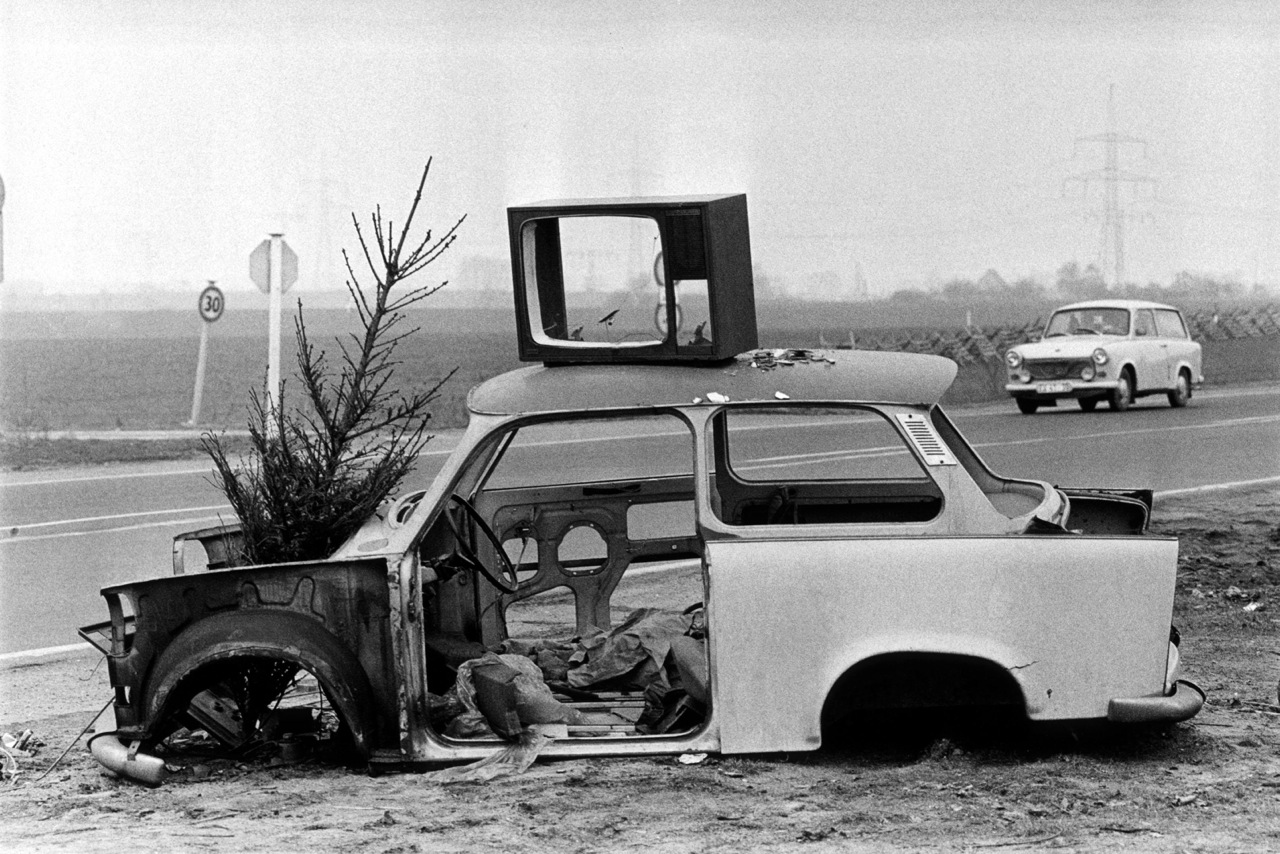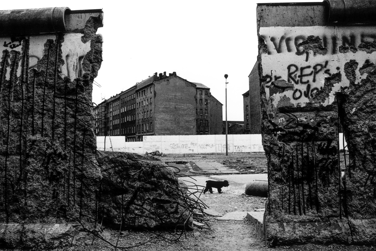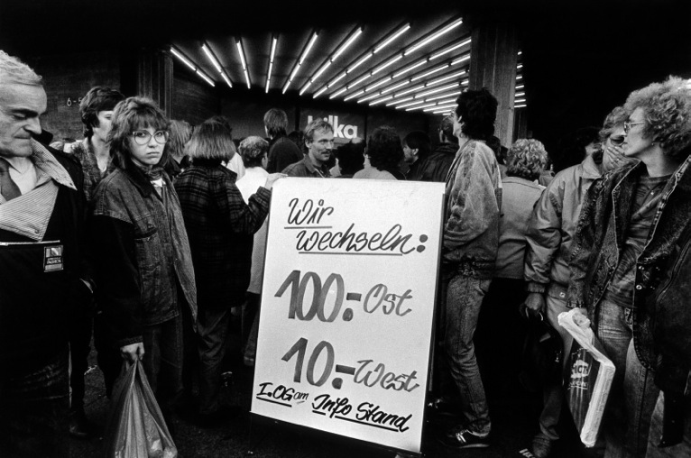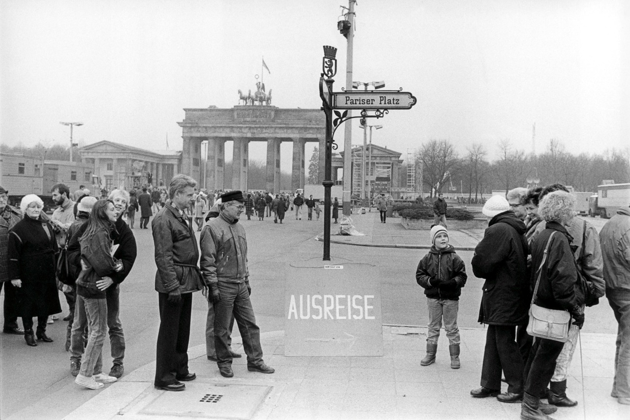 Berlin, 10.11.1989 Jugendliche ärgern die DDR Grenzbeamten am Tag nach dem Mauerfall